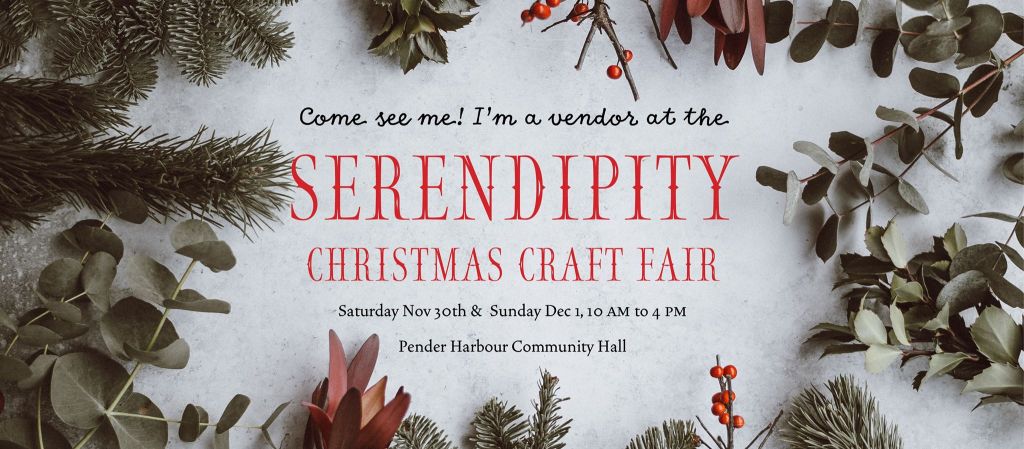 A couple of weeks later we have the Serendipity Christmas Craft Fair. On Saturday, November 30th and Sunday, Dec 1 at the Pender Harbour Community Hall. It’s always a great turnout, with delicious hot foods and lots of beautiful things for sale by their creators.